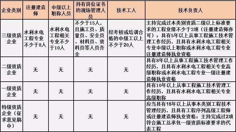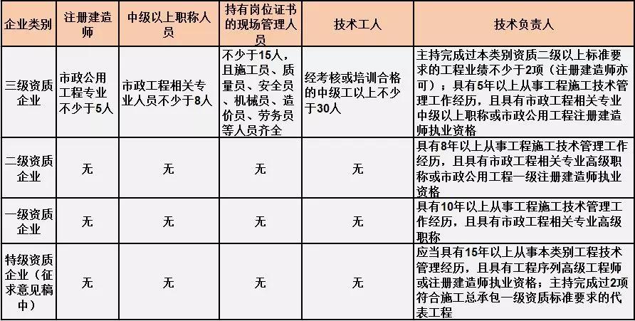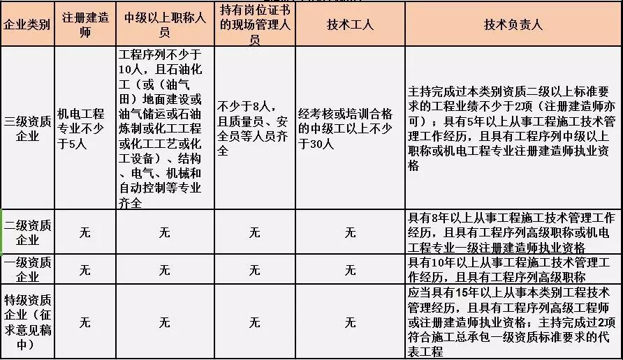 換句話說,并不是所有企業(yè)資質(zhì)都不要求有建造師等企業(yè)人員。施工總承包三級資質(zhì)企業(yè)對建造師等人員仍有要求,一級資質(zhì)、二級資質(zhì)企業(yè)保留技術(shù)負(fù)責(zé)人這一項(xiàng)要求,特級資質(zhì)另有規(guī)定。