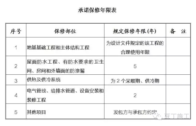 (2)工程項目承諾保修期限: